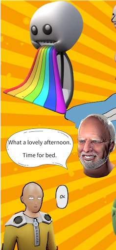 3D Memes Maker高速で簡単なミームジェネレータ:いくつかのタップで、どんな写真や3Dシーンにも楽しいゲームの文字を追加でき、友達と共有できます。