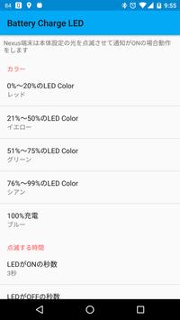 Nexusなどの充電中にLEDが光らない端末を残量に応じて光らせます。 通常利用時にはサービスを起動せず、充電開始のイベントでランプを動作させます。 プラグが外されると自動的にサービスを終了し、通知は消えます Nexus5Xで動作確認しています 充電の色が変わるタイミングで他のアプリから通知LEDを発行している場合、本アプリのLED色で 書き換えられますのでご了承ください