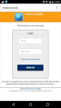 - Remote monitoring. All the tracked data is stored on the server trackmy.mobi