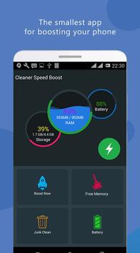 Clean Speed Boost (clean & boost) is a fast, small Android Optimizer, Speed Booster, Battery Saver, CPU Cooler, Cache Cleaner, Junk Cleaner, and APK File Backup