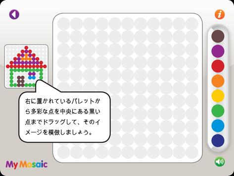 マイモザイクは視覚認識スキルと手と目の協調の発達を促進します。そのゲームは、我慢強さ、勤勉さと正確さの発達も促します。4歳以上のお子様向けです。