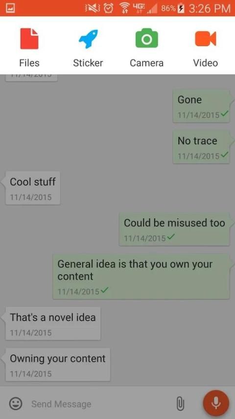 - Ability to send any type of file (Image, Video, Audio, Pdf, Excel, Text file, e.t.c) and create voice recording and also take back any media or content sent even after recipient view them.