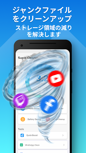 使いやすい、簡単で、高速かつ効率的にキャッシュ、古いシステムファイル、RAM、内部メモリと外部ストレージからのゴミやジャンクをクリアすることができます。