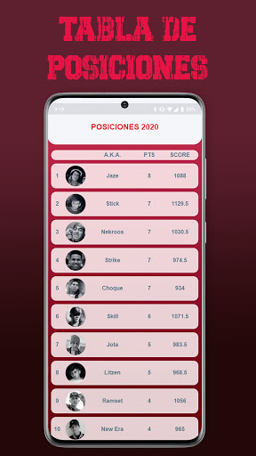 Encuentra toda la información sobre la competencia de batallas de freestyle mas popular! Tabla de posiciones con puntuaciones para cada artista, cruces de todas las jornadas, información sobre tus MC's favoritos y mucho más!