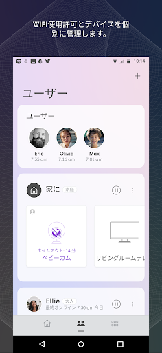 ゲストアクセスを利用者ごとにパーソナライズ。専用のパスワード、利用者の年齢に適したコンテンツフィルターの設定、ウェブサイトアクセスの管理、家族それぞれのプロフィール作成、ユーザーグループの作成、さらにインターネット利用の停止さえも可能です。
