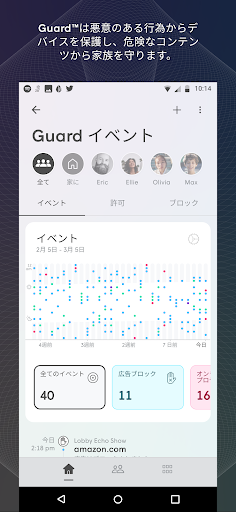 ホームネットワークとネットワークに接続されたデバイスを、ハッカーやサイバー犯罪者から保護します。GuardはAIを活用した高度なセキュリティ機能を用いて、インターネットに接続したご自宅のネットワークを守ります。