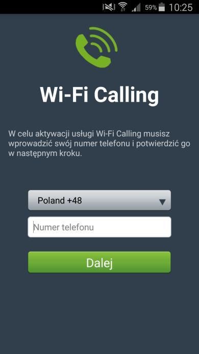 Aplikacja WiFi Calling umożliwia realizowanie bezpłatnych połączeń głosowych z wykorzystaniem sieci Wi-Fi w ramach korzystania z usługi „Wi-Fi Calling-Test”. Warunkiem korzystania z usługi „Wi-Fi Calling-Test” jest pozytywna weryfikacja zgłoszenia potwierdzona wiadomością tekstową SMS. Szczegółowe warunki przystąpienia do testu i korzystania z usługi są zawarte w Regulaminie Testu Konsumenckiego Usługi Wi-Fi Calling-Test.