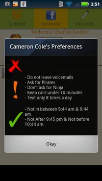 Share your Call Preferences with your friends and set-up your own preferences. Integrate with your Facebook account to see when it is best to contact your friends and family.