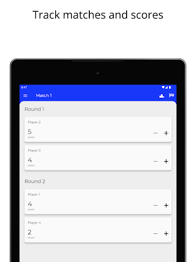トーナメントの作成は簡単です - ただプレイヤーの数、マッチ、および一度に競争できるプレイヤーの数を入力します。その後、Friends Tournamentは試合とラウンドを生成し、トーナメント計画から手間をかけます。プレイヤーが競うと、スコアが記録され、リーダーボードがリアルタイムで更新されます。今すぐダウンロードして、次のトーナメントの計画を簡単に開始してください!