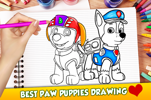 このアプリは、足の子犬の巡回追跡とマーシャル、岩、ズマ、瓦礫、犬の犬の名前を作成するのに役立ちます。スタートからフィニッシュまでの製造や着色、子供だけでなく、簡単なトリックで画像をカラー画像しています。