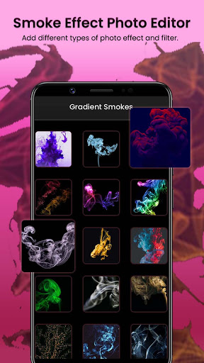 *この喫煙フォトエディタ/フォトエフェクトスモークアプリをダウンロードして、あなたの電話機のギャラリーから写真を選択して、簡単な煙の効果、3D煙効果、偽物を適用する煙の効果、芸術的な煙の影響、着色された煙の影響、そしてレインボーの煙の影響。