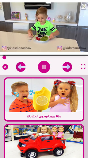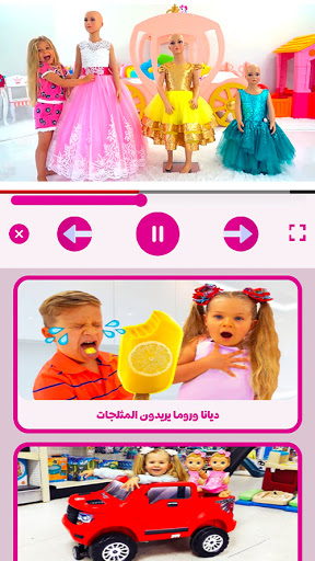 DianaとRomeのチューブのアプリケーションと子供のための無料アプリケーション YouTubeで最も美しいエピソードをブロードキャストする最も美しいキャラクターに。アプリケーションには500以上のビデオが含まれており、4つの言語、アラビア語、スペイン語、ポルトガル語が含まれています 5つ星