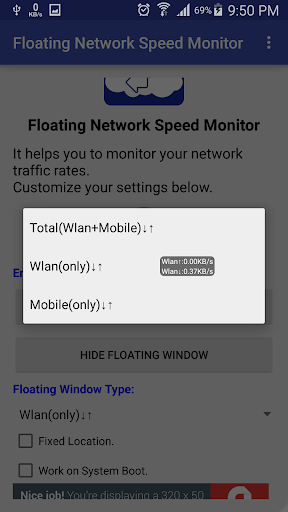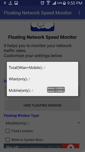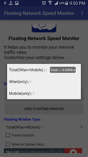 It helps you to monitor your network traffic rates. Showing it above other Apps. For questions and inquiries or improvement requests: https://www.facebook.com/Mostafa.Saady