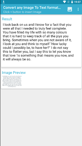 Convert any Image To Text format : OCR allows you to digitize any printed document such as: articles, letters, receipts, contracts etc. Convert any textual image to digital text so you can edit it, search it and store it properly on your mobile device.