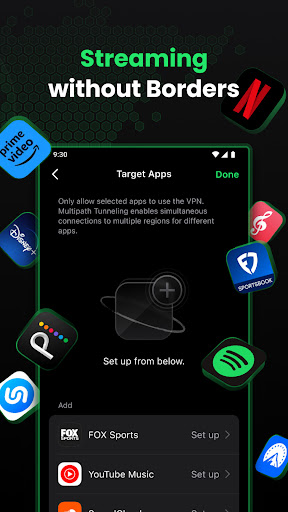 VPNロケーション選択ペアカスタマイズされたアプリの免除のバイパスアプリの設定。ランドスケープ保護