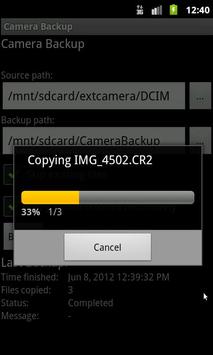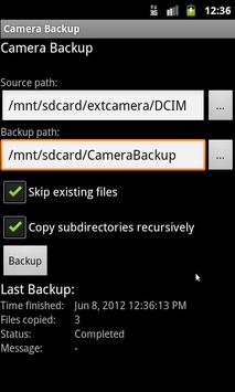 Camera Backup also gives you precise status information as to whether the copy operation succeeded, along with the number of files copied. Even after the device was shut down and started again you can still see when the last backup was performed and with what result.