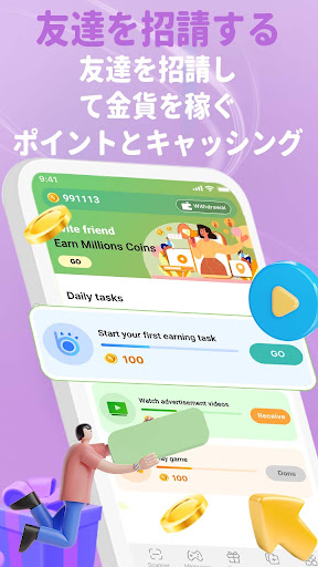 アプリを友達と共有して、一緒に現金を稼ぐよう招待できます。 招待が成功すると、豪華な報酬を獲得できます。