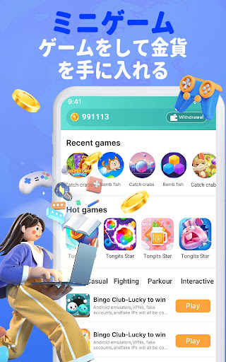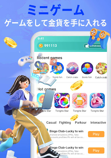 さらに、キャッシュアウトするためのさまざまなチャネルを提供しているため、引き出しプロセスがより便利になります。 アプリを使用して、実際の現金をすばやく獲得できます。 私たちに参加して、新規参入者のための特別な特典があなたを待っています。