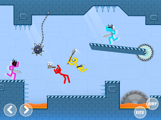 - ヒーローを選択し、複数の課題を選択します。簡単なコントロール。上向きと後方の矢印でのスティックマンファイター。