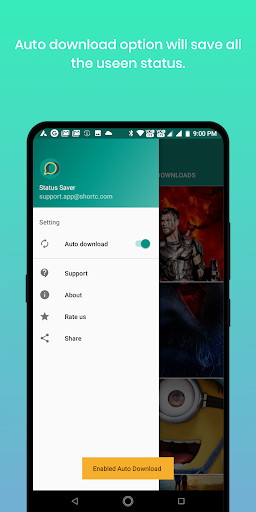 Auto download option download all Seen/ Unseen status of you frieds so that you never miss a status