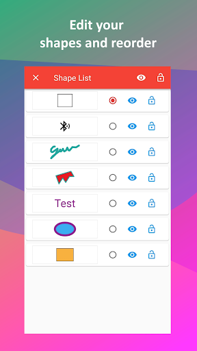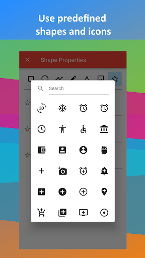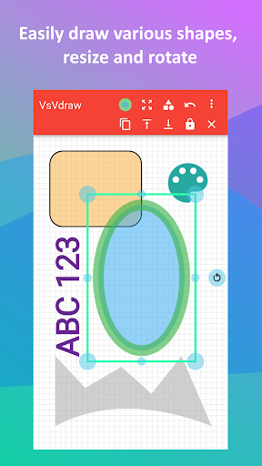 使いやすいベクトル描画アプリケーション。SVG形式として保存してロードできるベクトル画像を描画できます。バック/トップに、シェイプを元に戻す