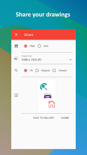*ギャラリーのPNG画像として図面を保存するか、他のソースと共有