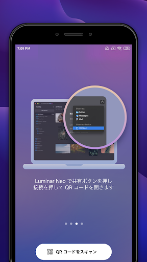 デスクトップのLuminar Neo アプリとLuminar シェア モバイル アプリ間の写真のワイヤレス送信