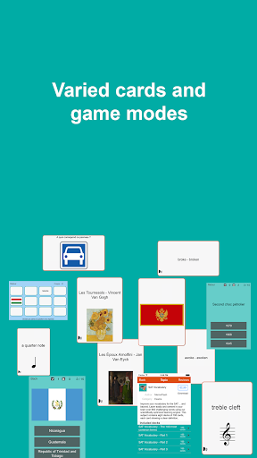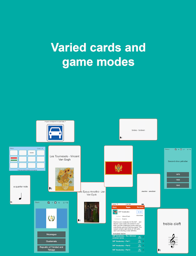 The cards can be studied with classical flashcards method but also with game modes and quizzes.