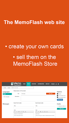 The MemoFlash website allows you to create your own cards and publish them on the MemoFlash Store.