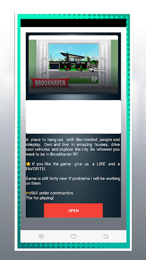 そこにBrookhaven Home、School、Hostal、Brookhavenの新しいアップデートを探索できます。志を着た人とロールプレイは、楽しんでください。アプリケーションには、インストール方法が表示されます。このアプリはRoblox Companyと提携していません。 Robloxブランドとゲームの町と都市の資産は、Robloxやその尊重の所有者の施設です。 Robloxの利用規約はこちら:https://en.help.roblox.com/hc/en-us/articles/115004630823