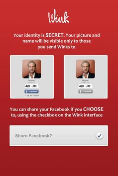 CONFIDENTIALITY ASSURED: none of your personal information is given to anyone. Wink can only share your Facebook Address if you CHOOSE to do so through a Wink Message.