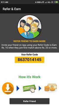 Our first 5 matches for free and you will also get Rs. 10 sign up bonus. so join immediately and play for win.