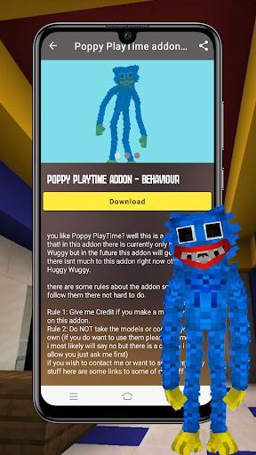 Poppy Playtimeが好きな場合は、Minecraft PEのMINECRAFT PEのMINECRAFT PEがアドオンを提供しますそのためのマップとスキン。ここに記載されているアドオンはHuggy Wuggyだけですが、将来的には再びアップデートします。人形工場マップ、そしてあなたはプレーヤーを追いかけることができるハギーウギジ人形に驚いています。ポピーの花を見つけ、走り、脱出が発生すると、通気口の中で走るときに抱きしめになることができます。