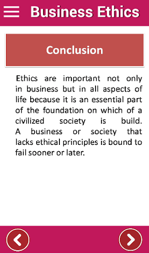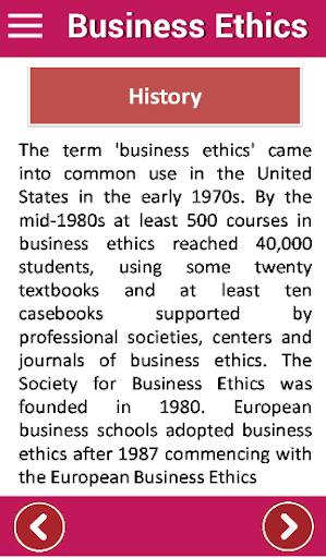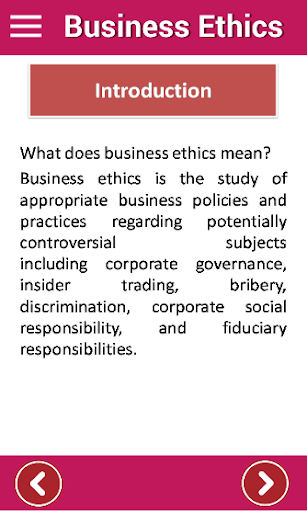 The Following topics are covered in this business ethic guide app: