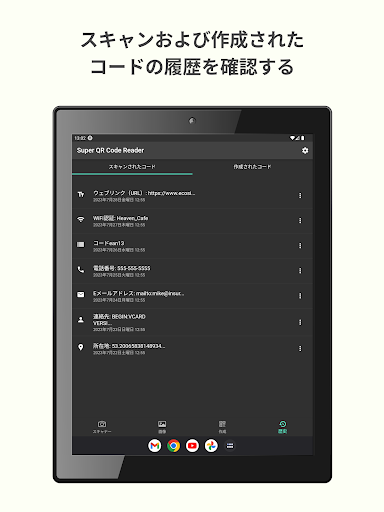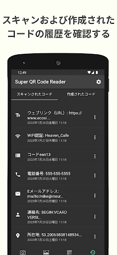 コードログ – 以前にスキャンまたは作成したすべてのコードを履歴セクションで確認します。