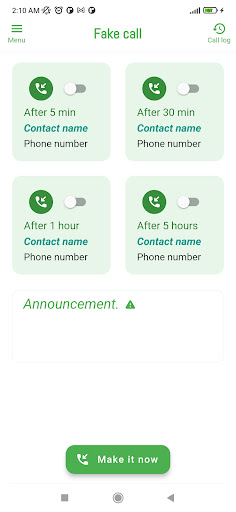 The fake calls application helps you to receive calls on your phone for real, as the application allows you to make instant calls, that is, receive incoming calls at the moment, and there is also the feature of setting scheduled calls by setting times to receive fake calls.