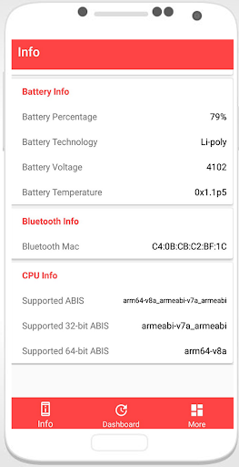 Also useful to detect your current android version firmware, detect RAM and Internal Memory available in your device, as well as root check. The ultimate upgrade / update tool advisor