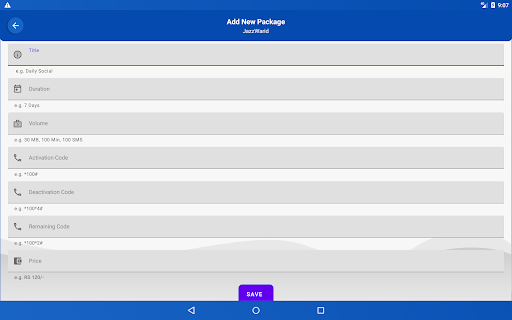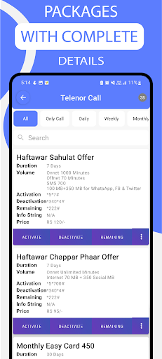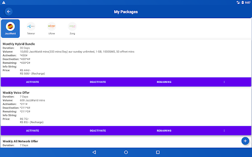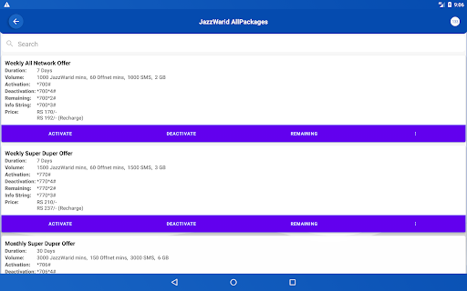 SIMパッケージパキスタンは、パキスタンのすべてのネットワーク(Jazzwarid、Ufone、Zong、Zong、Sco、PTCL、JazzCashを含む)のすべてのネットワークの情報を1つのアプリに提供しています。後で。後で使用する独自のパッケージを追加することもできます。