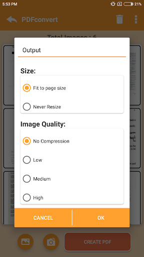 This application is one of the fastest PDF file generator rate depends on the parameters of your device android, as well as the size and number of images.