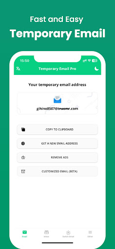 注意:このアプリを使用して電子メールを送信することはできません。時間。したがって、メールを1〜2時間以上保存することはできず、ドメインが変更の対象となる可能性があります。重要なアカウントを登録したり、機密データを受け取ったりするために一時的な電子メールを使用しないでください。削除されたら、電子メールやドメインを復元する能力はありません。
