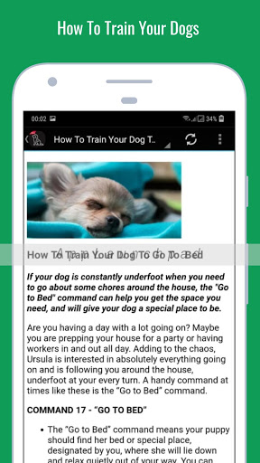 Learn the knowledge with The best tips on How to Train my Dog Training Dog Offline Free and teach you how to educate your dog, how to understand your dog, how your dog thinks, how to treat your dog in a healthy way, all this and much more in one application.