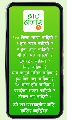 Haat Bazaarアプリは、コミュニティまたはビジネスハウス内ですぐに製品を購入/販売したいネパールの買い手と売り手にとって有用であることが証明されている農業ベースのアプリです。肥料、実生、薬、ツール、必須商品などの製品など、製品や商品の適切な価格を簡単に購入、販売、輸出できるようにします。