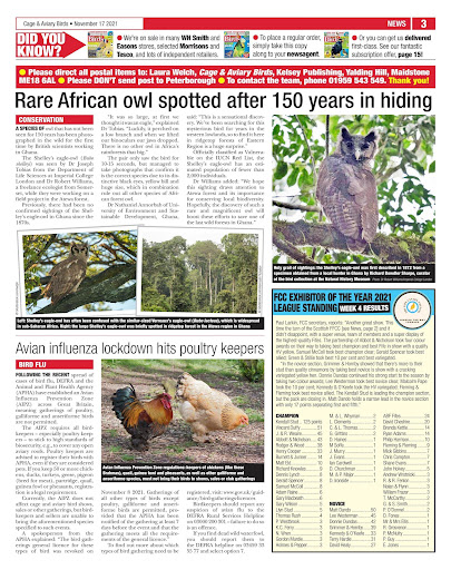 鳥のファンのための鳥の専門家によって書かれた、それはアヴェキシポラルシーンからのニュース、アドバイス、コメントが詰まります。バードクラブや社会のメンバーのための不可欠な資源、それはまた、イギリスの島と世界中の鳥の販売者やすべての鳥関連製品のための比類のないマーケットプレイスを提供します。週間として、それは独特です鳥類人公に影響を与えるすべての科目の包括的および局所ニュースの源:動物園や鳥パークのイベント、科学研究とビジネスニュース、趣味の人格の成果、そしてクラブとそのメンバー。