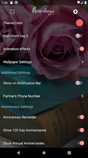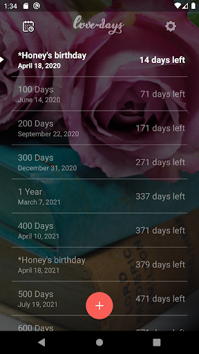 カップルの日数を数えて、美しいアニメーションを持ついくつかの記念イメージを見るためのアプリケーション