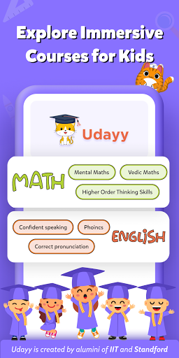 udayは、追加、減算、乗算、分割、分数、ジオメトリ、および幾何学、そして数学のためのその他のトピック。英語のために同様に、質問は他のものの中でのフォニックス、文法、語彙に基づいています。