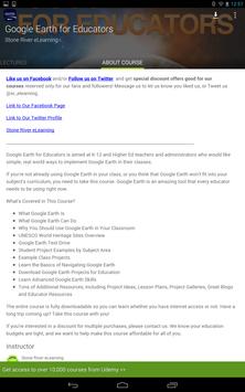 "I enjoyed learning about Google Earth and hope to use it in my classroom this year as we study Africa and Asia. I didn't appreciate that I couldn't get a certificate of completion unless I bought additional courses from Stone River eLearning!!"