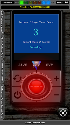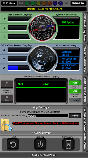 EVPを記録し、あなた自身のオーディオバンクとライブEVPレコーダー/プレーヤーを記録する機能も含まれています。振動が検出されます。