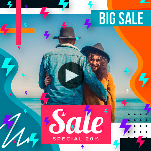 This easy to use app, just select the design you like in the proportion according to your needs and add your text with fonts, add wonderful sales stickers, add your images from the gallery and create the perfect image, then use the created image to create your video.