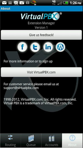 This app works in concert with the browser-based management tool for any Virtual PBX account. To use it, you will need an active extension on your Virtual PBX account, along with your Virtual PBX phone number, extension number, and web password.