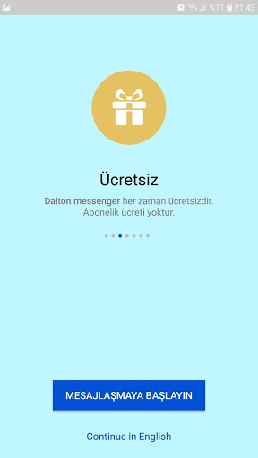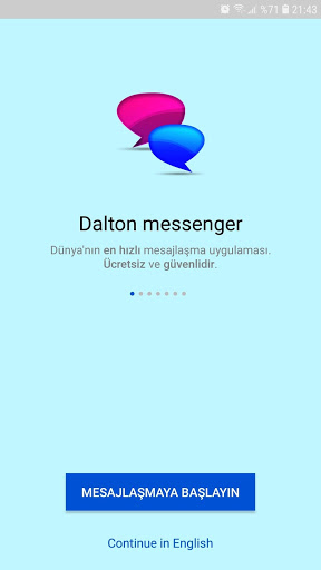 Dalton messenger, internet bağlantısı aracılığıyla dünyadaki herhangi biriyle bağlantı kurmanı sağlayan ücretsiz bir messenger uygulamasıdır. dalton messenger ile arkadaşlarına ve ailene mesaj gönder.